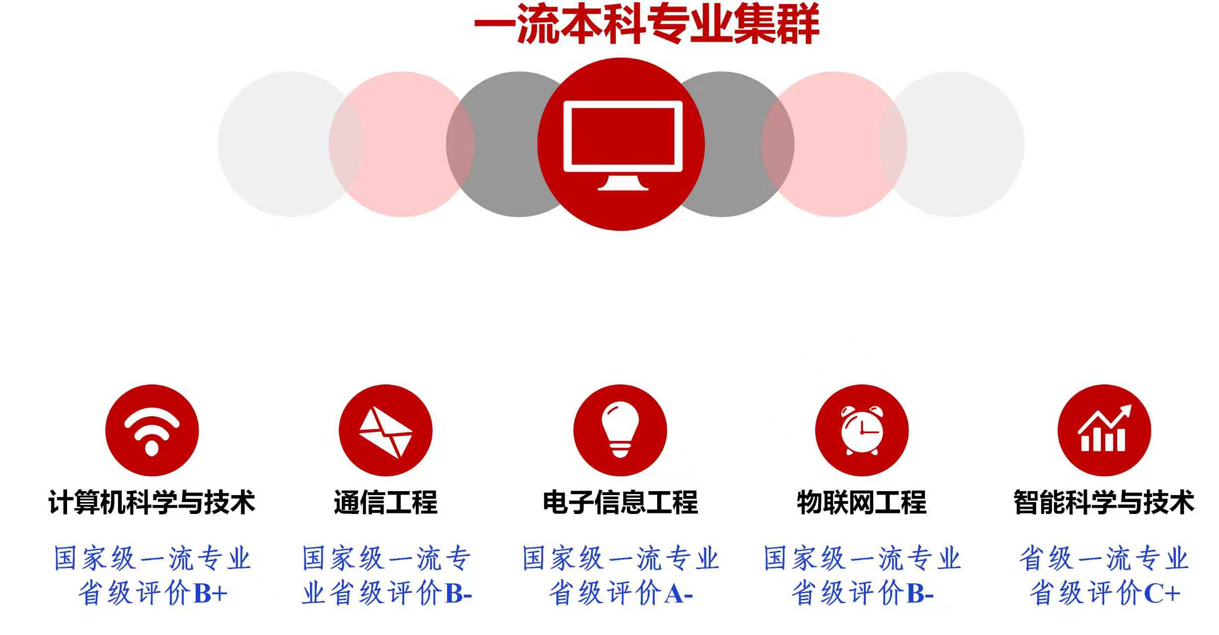 此次评价结果标志着公司专业内涵建设取得实质性进展。至此,公司已建成计算机科学与技术(国家级特色专业、国家级一流本科专业,省级评价B+)、通信工程(国家级一流专业,省级评价B-)、电子信息工程(国家级一流专业,省级评价A-)、物联网工程(国家级一流专业,省级评价B-)和智能科学与技术(省级一流专业,省级评价C+)5个一流本科专业,专业建设水平全省居前列,形成了特色鲜明的信息类专业集群。